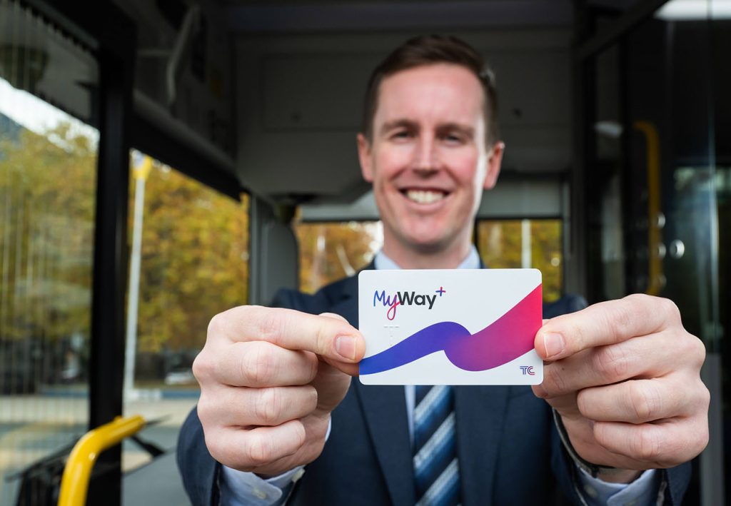 Die „myWay“-Karte ist die einheitliche Fahrkarte für den öffentlichen Verkehr in Canberra. Sie ist sowohl für Busse und Straßenbahnen als auch für einige Zugverbindungen gültig. Die Karte kann nicht nur aufgeladen werden, sondern lässt sich auch mit persönlichen Daten verknüpfen, was sie besonders praktisch im Falle eines Verlustes macht.
